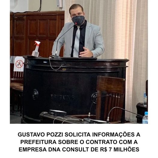 Na sessão ddo dia 22/02/22, o vereador Gustavo Pozzi protocolou um requerimento solicitando a prefeitura municipal de São Carlos informações a respeito do contrato no valor de R$ 7 milhões entre a prefeitura e a empresa DNA Consult, responsável pela realização de testes para detectar a covid-19 nos munícipes que procuram a rede pública de saúde.