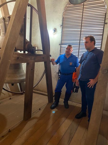 Na manhã do dia 13/01/23, acompanhei a Defesa Civil em visita a Paróquia Santo Antônio, algumas rachaduras apareceram no prédio da Igreja e o Padre Aymoré, preocupado com a segurança no local, solicitou que eu pedisse a Defesa Civil uma visita na Igreja.